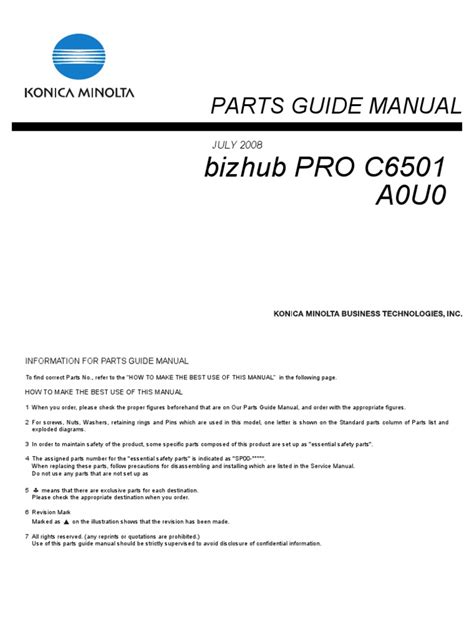 Presently you are looking regarding an Bizhub Pro C6501 Parts Guide Manual example of which we provide here in some form of document formats such as PDF, Doc, Power Point, and in addition images of which will make it simpler for you to create an Bizhub Pro C6501 Parts Guide Manual yourself. For a more clear look, you can open a few examples below. Each of the examples about Bizhub Pro C6501 Parts Guide Manual on this web site, we get from several sources so you can create a better file of your own.If the search you acquire here does not match up what you are searching for, please use the research feature that we possess provided here. You will be free to download something that we provide right here, investment decision you won't cost you the particular slightest.